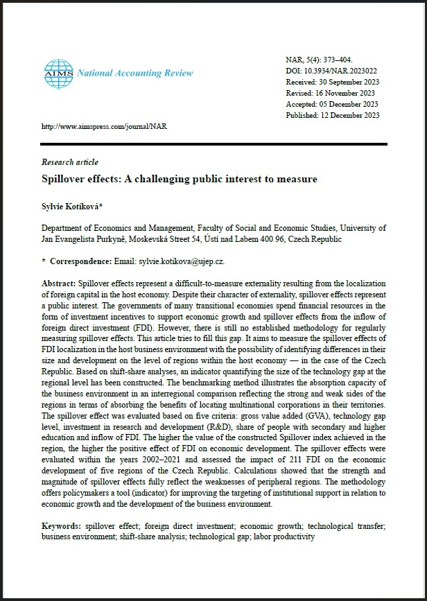 Kotíková, S. (2023). Spillover effects: A challenging public interest to measure. National Accounting Review, 5(4), 373-404. https://doi.org/10.3934/NAR.2023022. [IF: 1,8. Q2]